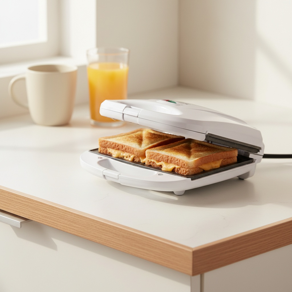 Nu trebuie decat sa impingeti in jos pentru a inchide si bloca in siguranta aparatul de sandvisuri.
