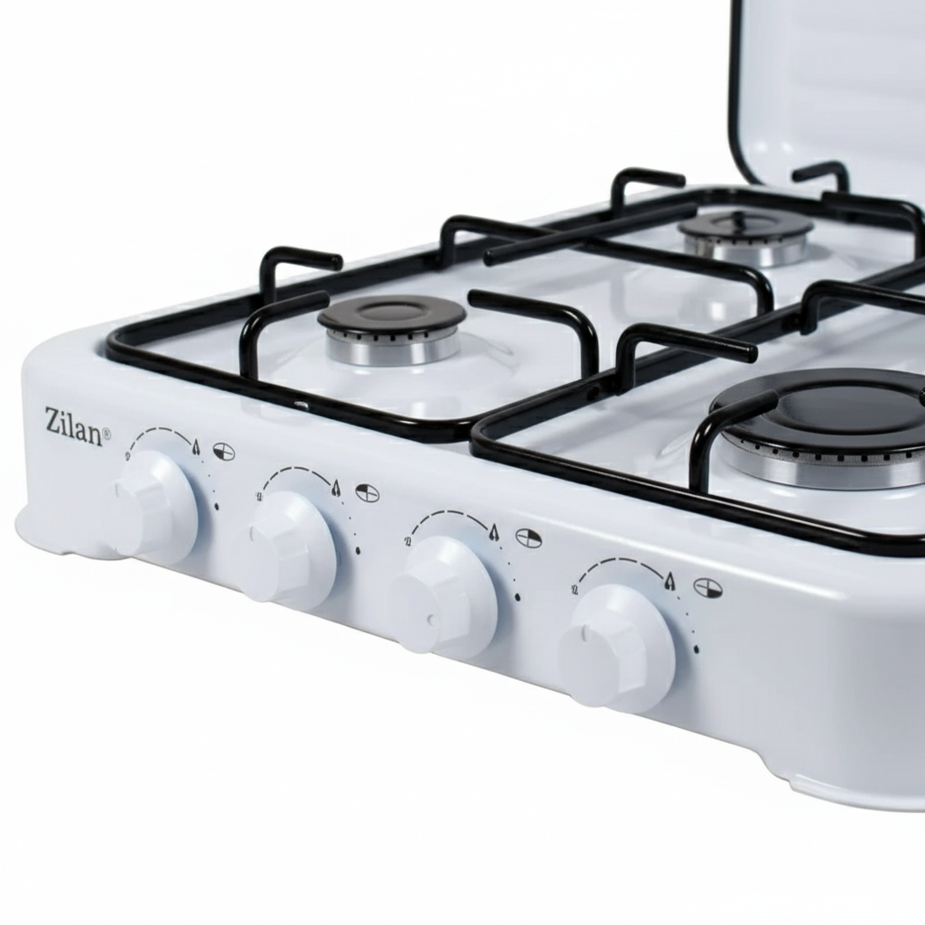 Aragaz emailat Zilan, 4 arzatoare, alb, ideal pentru spatii mici, case de vacanta, bucatarii de vara. Dispune de design clasic si dimensiuni medii fiind usor de amplasat in bucataria dumneavoastra.