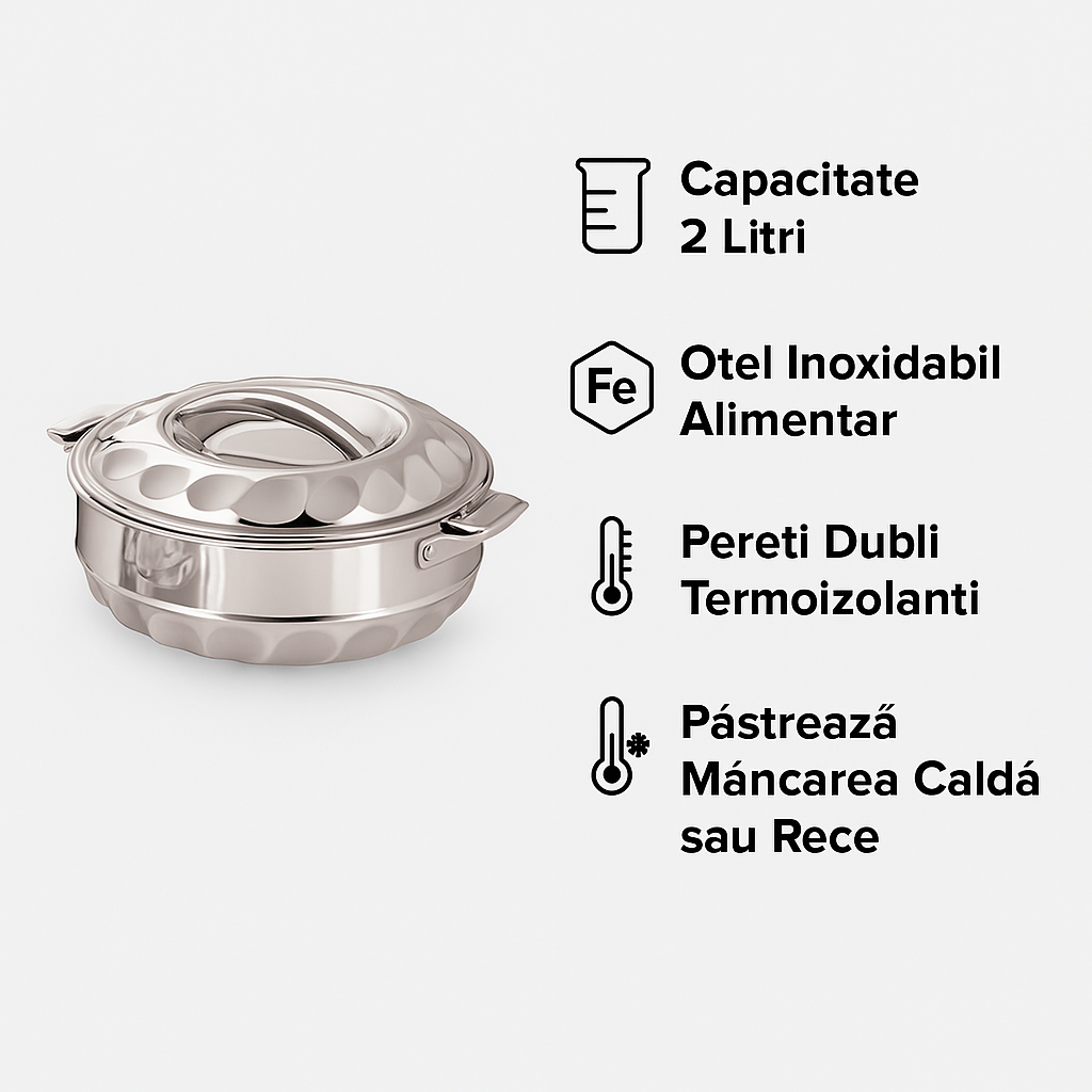 Caserola termos din inox Grunberg GR2974, 2 litri