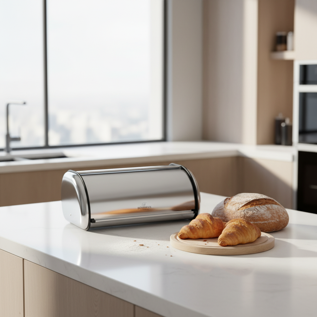 Cutie pentru paine Bohmann BH-7239S, 35 x 23 x 14 cm, inox, Argintiu. Cutia pentru paine este ideala pentru depozitarea tuturor produselor de panificatie cum ar fi: painea, baghetele, briose. Cu o inchidere etansa, cutia pastreaza prospetimea painii, a croissantului si a altor produse de patiserie.