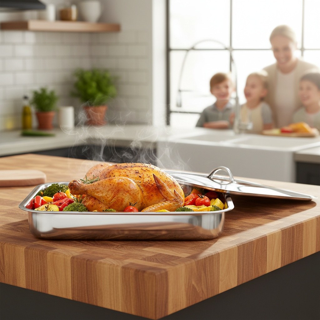 Foarte bun raport calitate-preț. Tava pare subțire, dar materialul este rezistent și își face treaba. Se curăță ușor, nu se pătează, nu se lipește (dacă se respectă regulile de bun simț în utilizarea ei). Deși am luat-o pentru friptură, am făcut în ea și prăjitură.