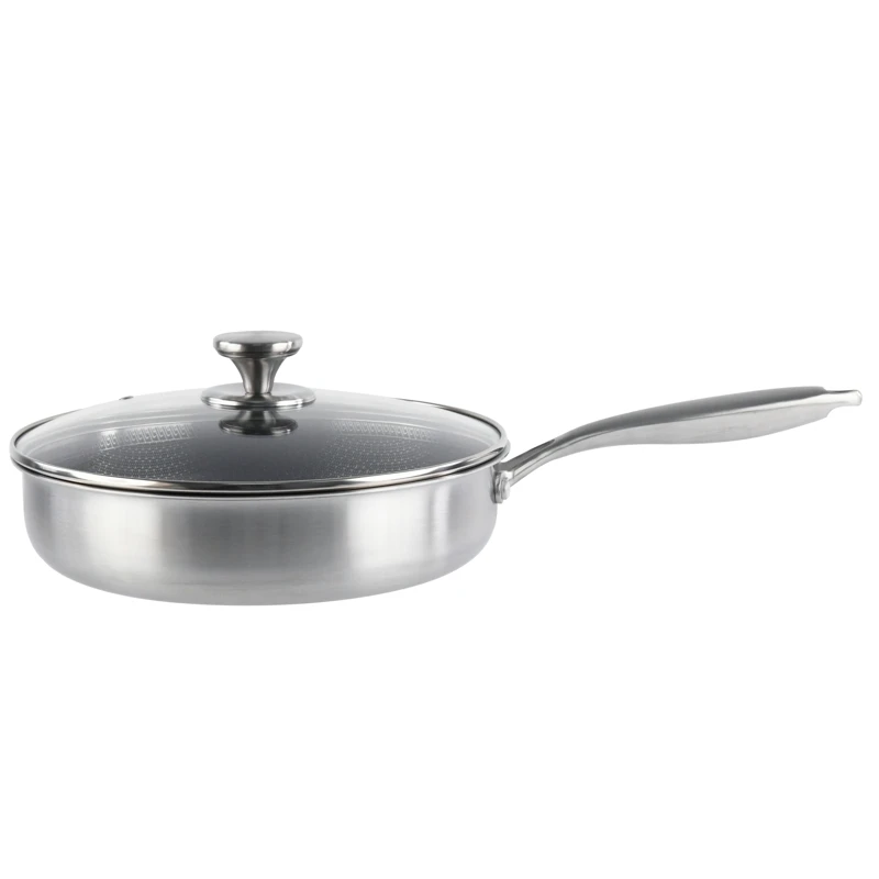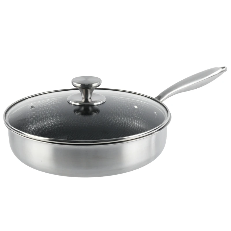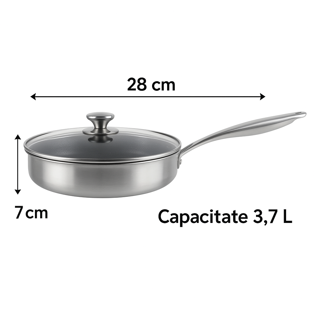 Tigaie din inox Grunberg GR9628, 28 cm, 3.7 l, capac sticla, invelis anti-aderent honeycomb, compatibila inductie
