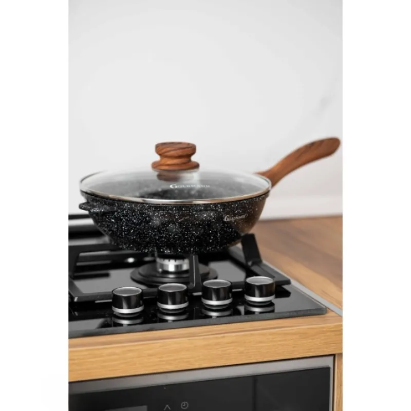 Tigaie Wok Goldmann GM-0128L, 28×7 cm, capac, aluminiu cu acoperire ceramica, maner soft touch, inductie